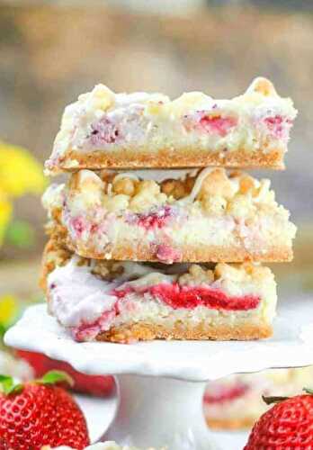Strawberries and cream cheese make these crumble bars burst with flavor in your mouth! Highly addictive!