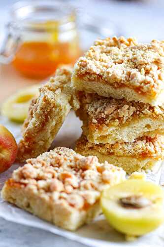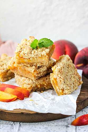 Healthy Peach Crumble Bars with a Crumb Topping made with all vegan and gluten-free ingredients for an delicious summer fruit dessert! These Peach Crumble Bars have a crumb topping and they are made with all vegan and gluten-free ingredients.