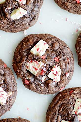 Rich and fudgy brownie cookies with peppermint bark in every bite.