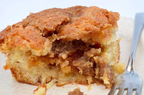 This lush, vanilla butter coffee cake has cinnamon-sugar baked in with bits of apple, pecans and walnuts in every slice.