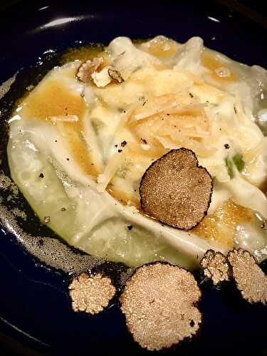 Make your own homemade ravioli stuffed with ricotta and an egg yolk, topped with brown butter and truffle.
