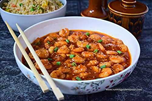 Asian chilli garlic prawns aka garlic prawns Chinese recipe is a spicy, flavoured and slightly sweet Asian prawns recipe which gets prepared very quickly.