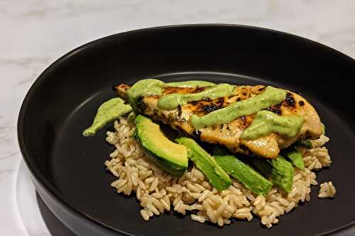 A simple, nutritious meal of avocado cilantro-lime chicken and rice that elevates healthy eating to a whole new level.