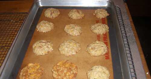 Out of the Oven —Two cookies on the left have been turned over to show bottom browning.