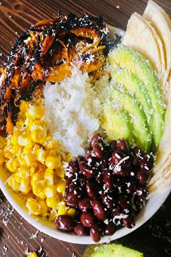 This chicken burrito bowl is a delicious Tex-Mex meal that can be enjoyed for lunch, dinner, or any day of the week! It's packed with perfectly seasoned chicken, cilantro lime rice, diced avocado, fresh mango salsa, corn, black beans, and cheese! It's.