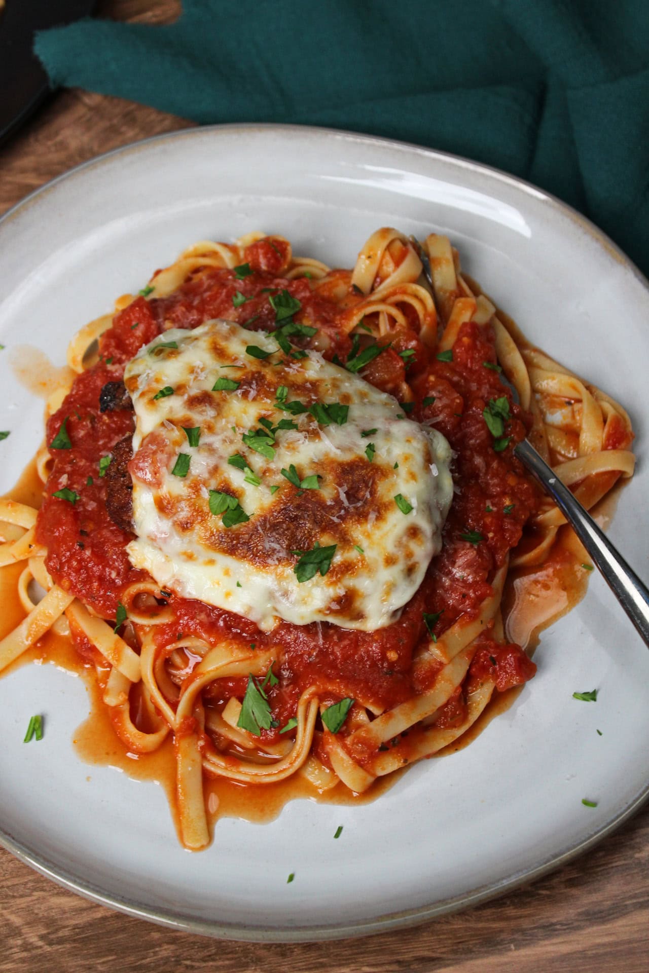 This delightfully crispy Chicken Parmesan, also called Chicken Parmigiana, is a classic Italian entree that combines a Parmesan breaded chicken breast with mozzarella, marinara, and pasta! The versatile chicken can be served with pasta and alfredo sauce,.