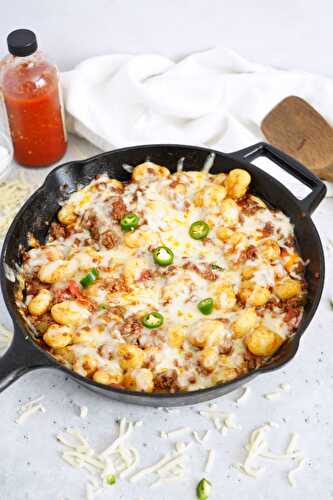 This Easy Skillet Taco Gnocchi make a great quick weeknight dinner with just six ingredients that the whole family will love.