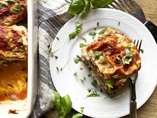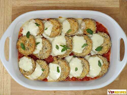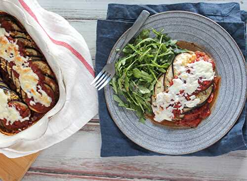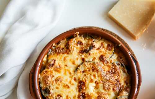 This eggplant gratin recipe combines eggplant slices with a creamy, cheesy sauce as well as a tomato or marinara sauce.