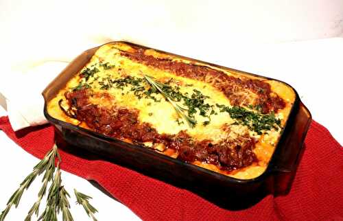 Moussaka with potatoes and eggplant includes ground beef or lamb, cheese, béchamel sauce, and tomatoes, for an authentic and delicious flavor