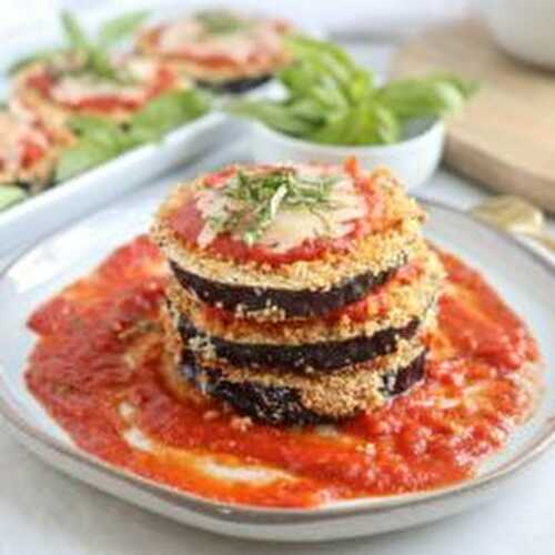 With a few tips and tricks, you can make a crispy baked eggplant Parmesan so delicious you will prefer it to chicken! This method is healthier than frying, although the layers of crispy Panko, melty mozzarella, and savory tomato sauce really makes it.