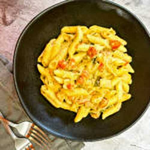 This spinach and roasted tomato pasta with cashew cream sauce is delicious and healthy.