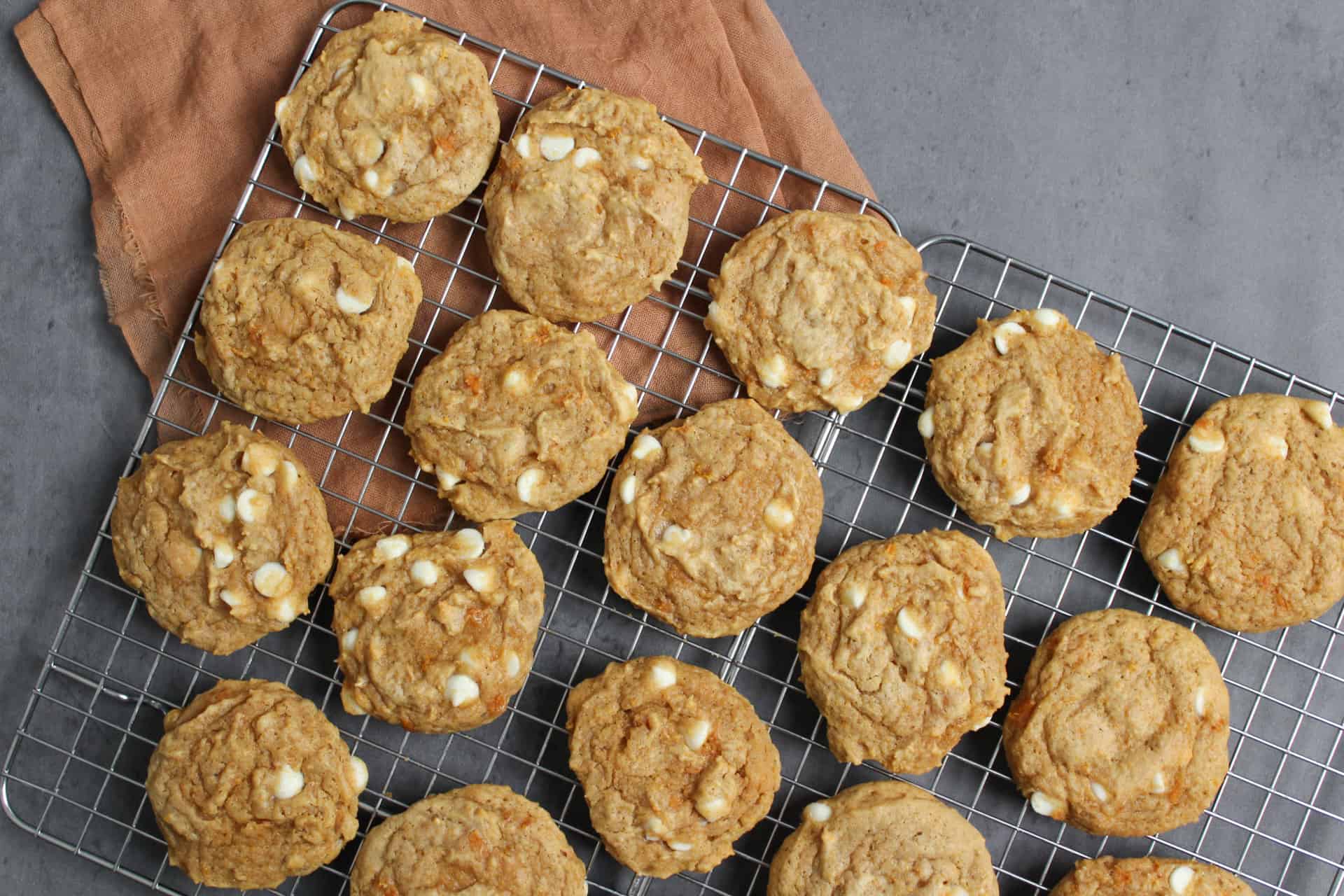 Sweet Potato White Chocolate Chip Cookies • Learn how to make delicious sweet potato cookies with this fun and festive Thanksgiving recipe!