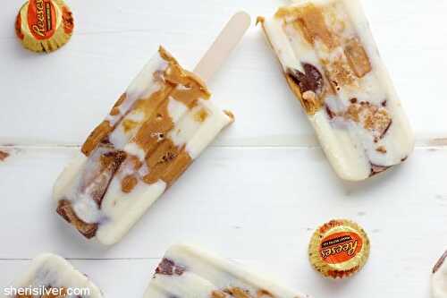 Each delicious peanut butter cupcake is stuffed with 2 Reese cups, one on top of the other.