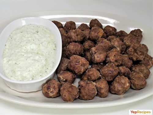 The tzatziki sauce is a creamy sauce with a garlic and cucumber flavor that is served with Greek dishes.