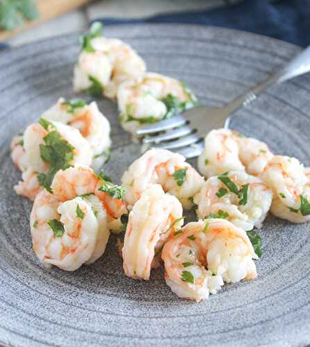 Chilled cilantro lime shrimp is the perfect blend of cilantro, lime, extra virgin olive oil and garlic for a tasty appetizer or chilled dinner.