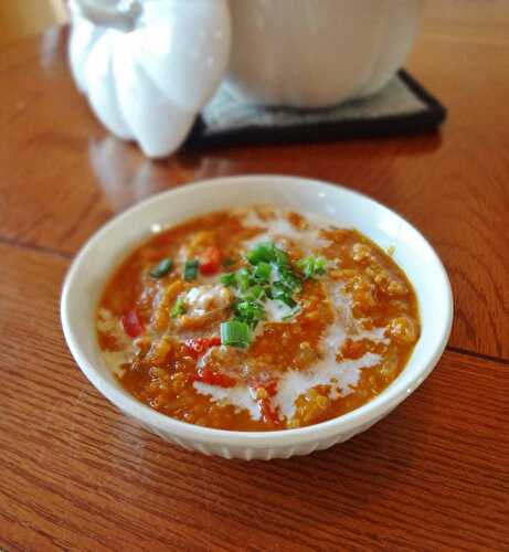This low calorie red chicken chili with tomatoes teams chicken with chili con carne ingredients for a great meal with rice or cornbread.