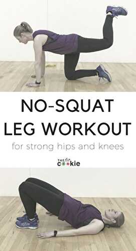 Have trouble doing squats, or need to avoid them due to knee trouble or injuries? This No Squat Leg Workout is great for strengthening your legs, hips, and glutes without squats and lunges!