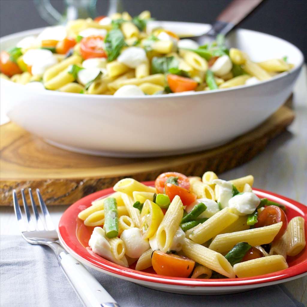 My grandma’s Asparagus and Brie Warm Pasta Salad is infused with the sweet flavor of fresh basil, while creamy bites of warm brie and crisp asparagus mingle throughout!