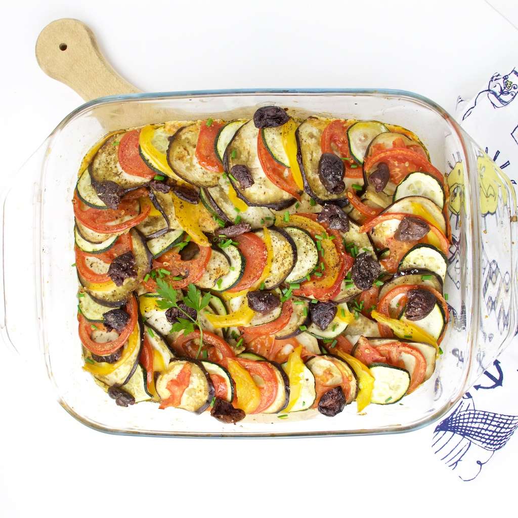 This roasted vegetable ratatouille is a tasty and healthy meal packed with fresh veggies! Plus, it's almost entirely hands-off.