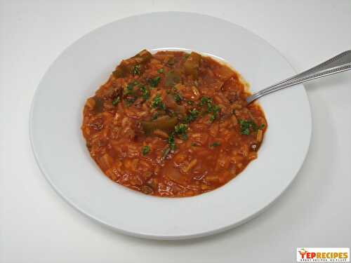 This healthy chicken stuffed pepper soup recipe is a delicious and easy meal idea! The recipe works for the stove top but you can also cook it in the Instant Pot, Ninja Foodi, or whatever pressure cooker you have.