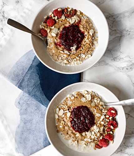 Table linen is from Wolf & Irving Easy and Healthy, Delicious Cherry Bakewell Porridge This has been my go to breakfast recently and I am so excited to share it with you.