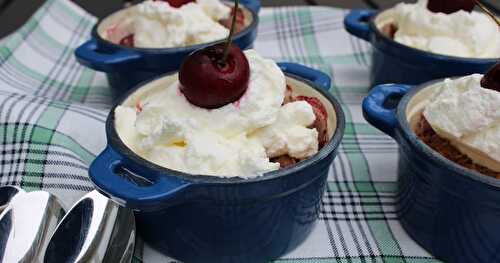 Fresh Cherries are the star of this yummy dessert, topped with a brown sugar and oat coating and homemade whipped cream.