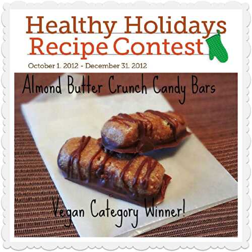 My recipe for Almond-Butter Crunch Candy Bars won the Attune Foods Healthy Holidays Recipe contest in the vegan category!