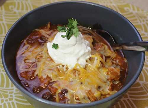 This Spicy Pork Chili recipe can easily be made in your slow cooker or on the stovetop.