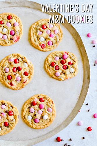 I made these Valentine’s Day M&M Cookies using my all-time very favorite master chocolate chip cookie recipe.