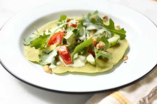 These are the easiest flatbreads ever, made simply with chickpea flour, water, spinach, lemon juice, olive oil and seasonings.