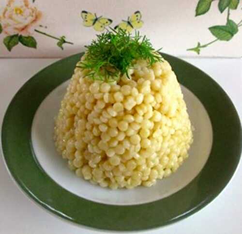 Israeli couscous, also called pearl couscous or maftool, is similar to regular couscous in that it's a small, whole grain-like food made from semolina or wheat flour.