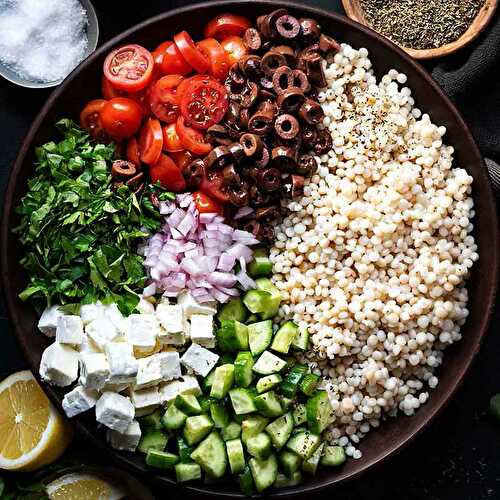 Greek salad ingredients combine in this classic Greek couscous salad.