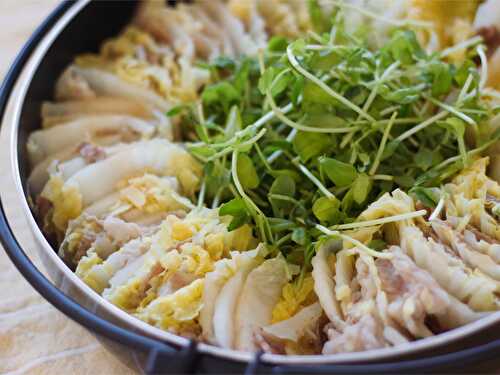 Mille Feuille Nabe is Japanese hot pot that consists of layers of nappa and sliced pork.