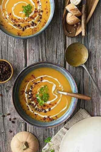 Delicious pumpkin soup with sweet potato, a simple and warming autumn recipe.