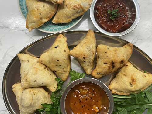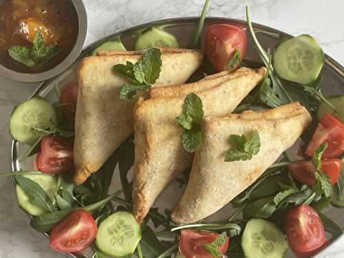 You can make vegetable samosas at home with this easy potato and pea samosas recipe made with filo pastry! These Indian inspired pasties are so addictive and great as a starter or as part of a buffet.