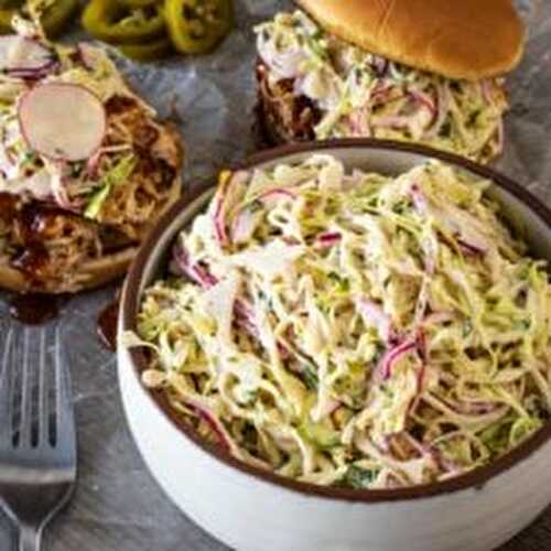 Brussel Sprouts in a Coleslaw? Oh, hell yeah! Who knew the infamous Brussels sprouts could be so delicious as a coleslaw! It is a great way to change up the traditional coleslaw recipe and add in a little more flavor.