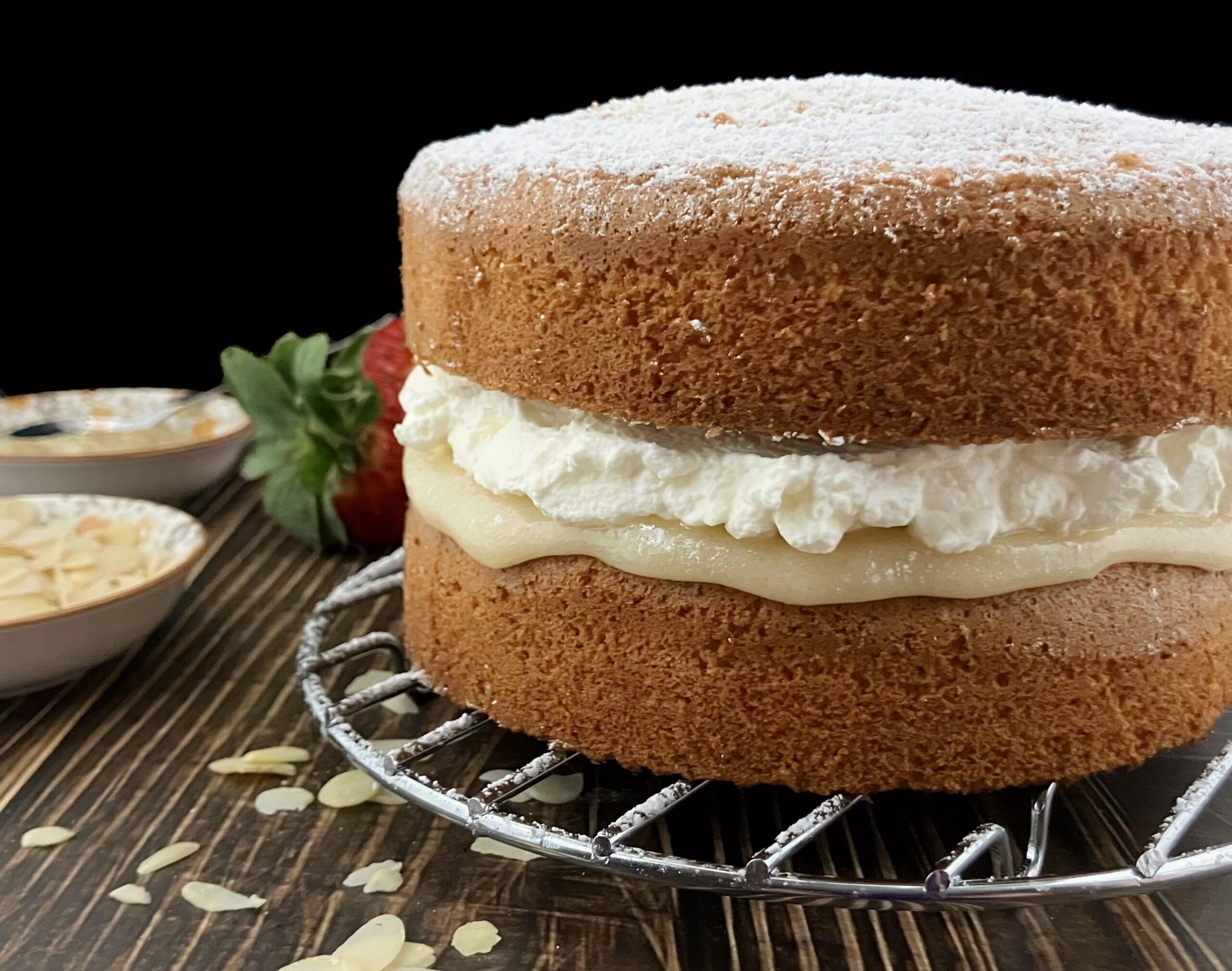 Want to impress your dinner party guests with a dessert that looks and tastes amazing, but is incredibly simple to make? Look no further than this delicious no-bake almond cream cake with ladyfingers drizzled in orange juice.