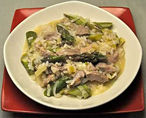 Asparagus Risotto, with Veal, Leeks and Green garlic, the best of spring in a creamy one-dish dinner.