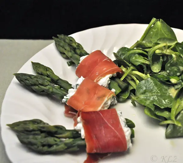 Asparagus with Prosciutto & Chevre, one of our favorite spring starters, easy and easy to do ahead for a dinner party