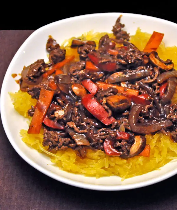P Spaghetti Squash with Ginger Meatballs Total time: 35 minutes Ingredients: 12oz (360gr) ground beef 1 egg 1/4 cup crumbs 1 tbs Dijon-style mustard 1 tbs s