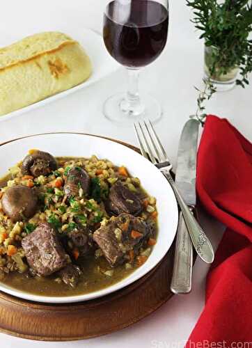 This one-pot meal is full of tender chunks of seared beef with mushrooms and barley.