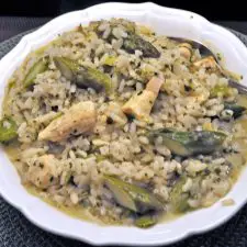 Asparagus Risotto, with Veal, Leeks and Green garlic, the best of spring in a creamy one-dish dinner.