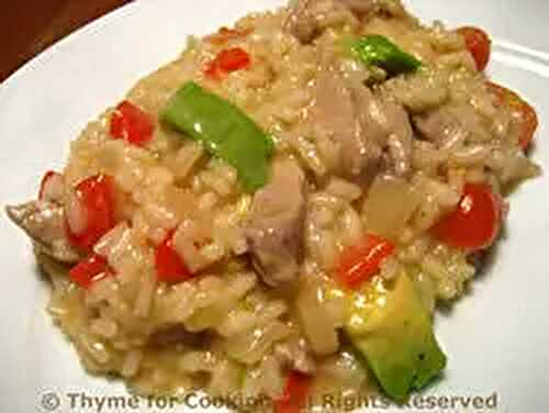 Spring Risotto with Ham and Asparagus, sliced Avocado to finish,