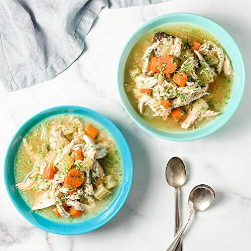 This Green Chile Chicken Stew is a family favorite that combines diced green chiles, salsa verde, celery, carrots, potatoes, and chicken for a hearty stew! Use a whole fryer or leftover deli rotisserie chicken for an out-of-this-world stew that is sure.