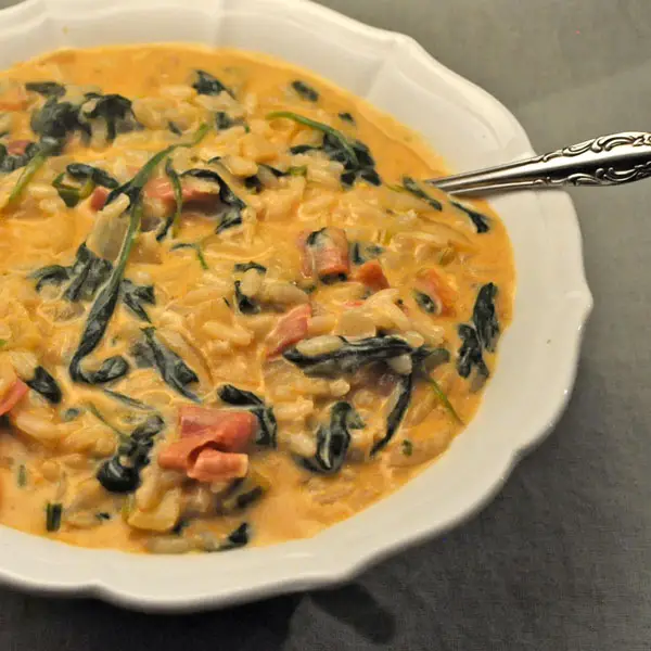 Farmhouse Risotto, with Prosciutto, Spinach and Goat Cheese.