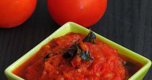 This spicy and tangy tomato pickle is the perfect accompaniment to breakfast or lunch and dinner.