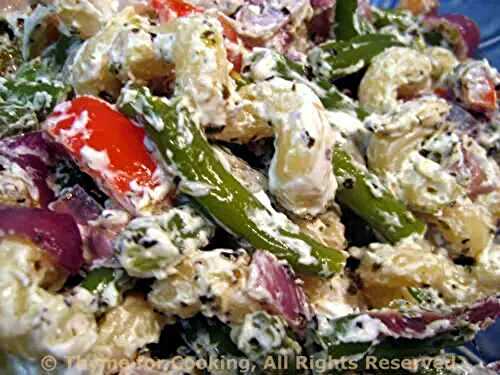 Green Bean and Tomato Pasta Salad, with the first veggies from the garden