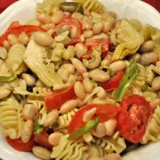I consider this a pantry salad as white beans and marinated artichoke hearts are one of my pantry staples.