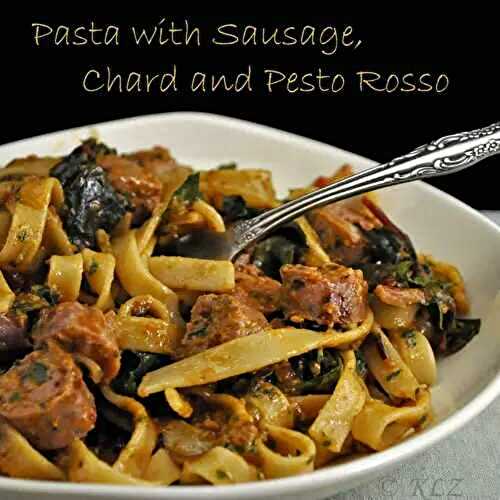 Pasta with Sausage, Chard and Pesto Rosso, easy dinner with leftover pesto rosso