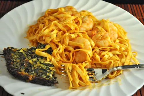 Tagliatelle with Shrimp, Avocado and Pesto, an easy pasta main course using purchased pesto